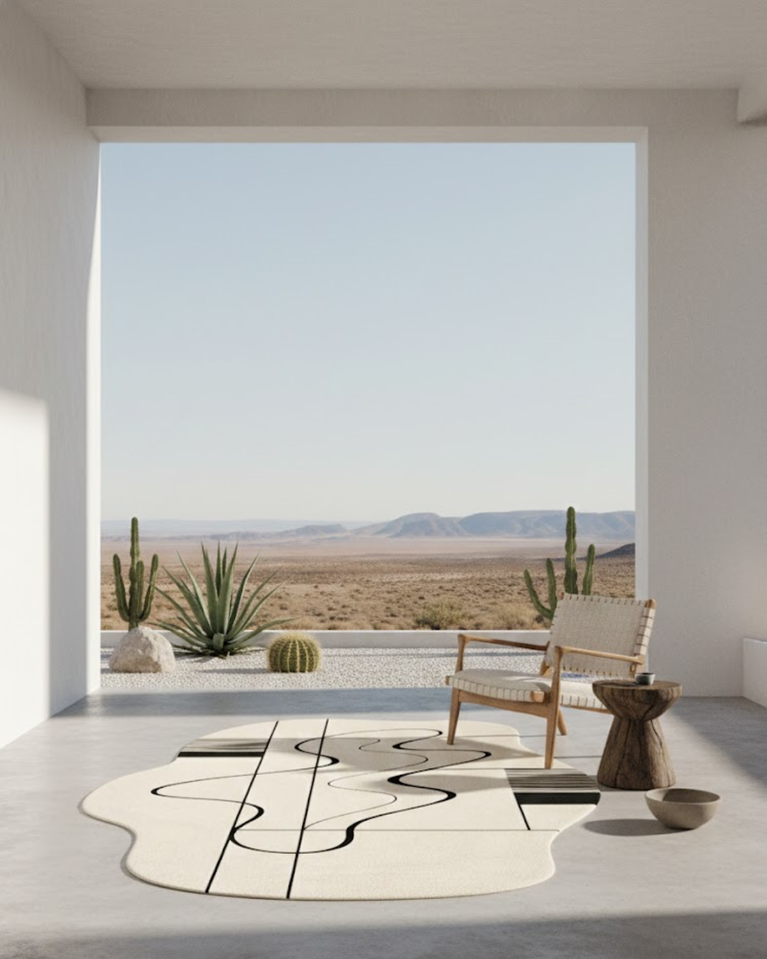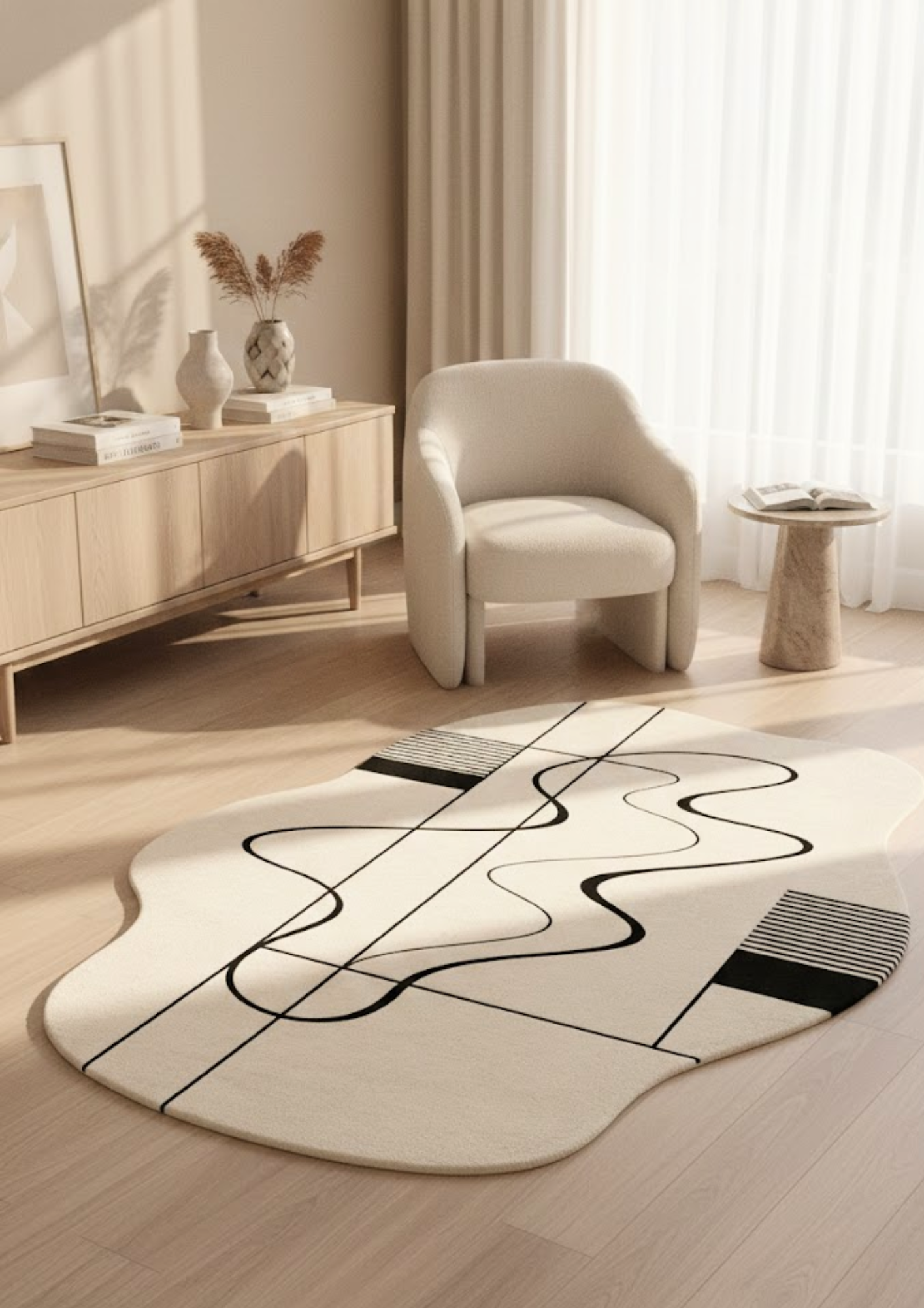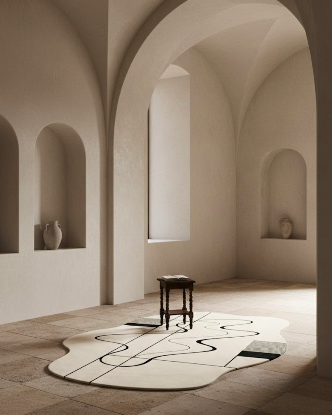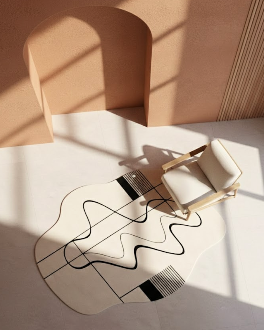 Rekhantar is a study in balance — where structure meets movement, and geometry meets flow. Designed as an artistic composition, this handmade wool rug layers architectural grid lines with fluid contours, creating a visual rhythm that feels both intentional and effortless.