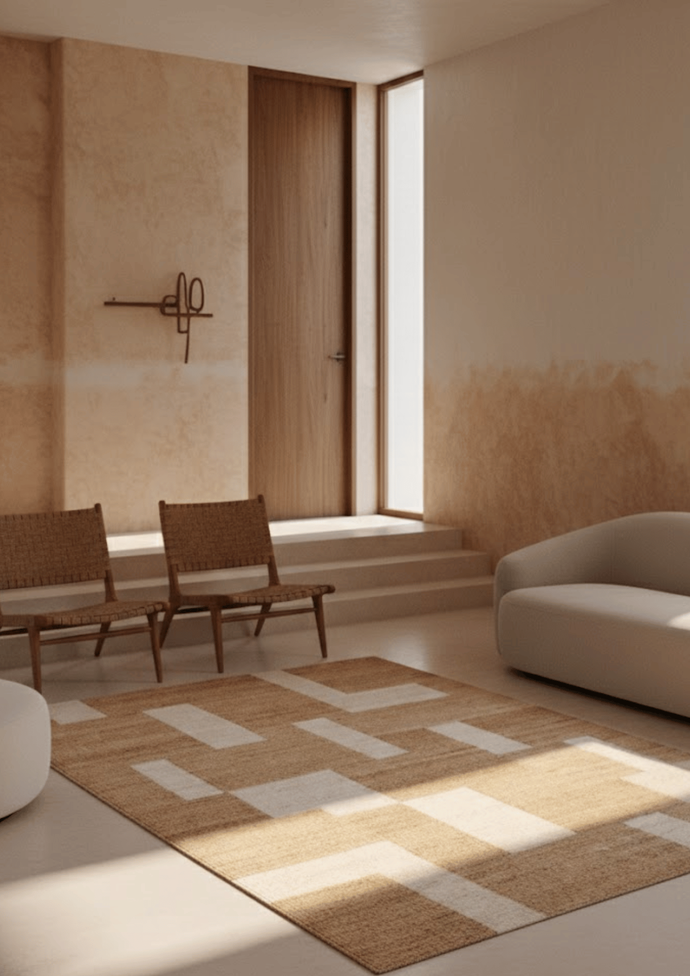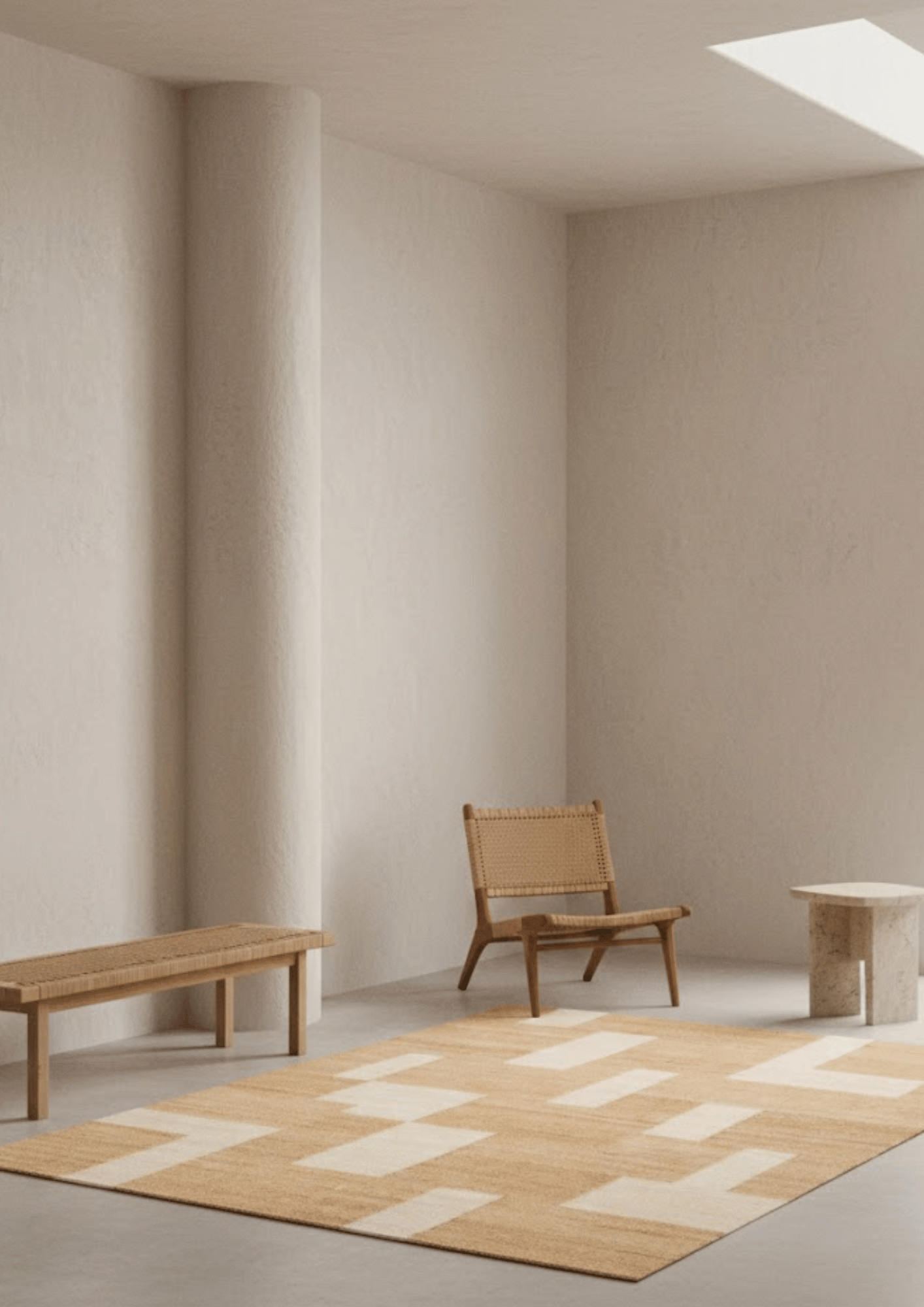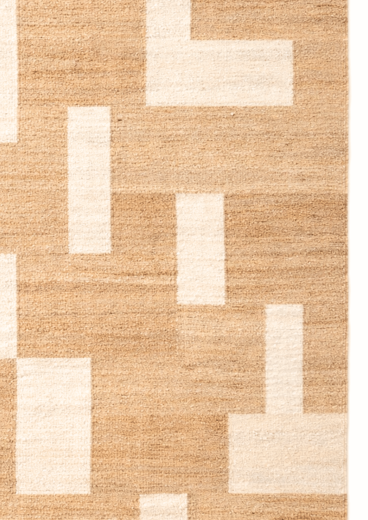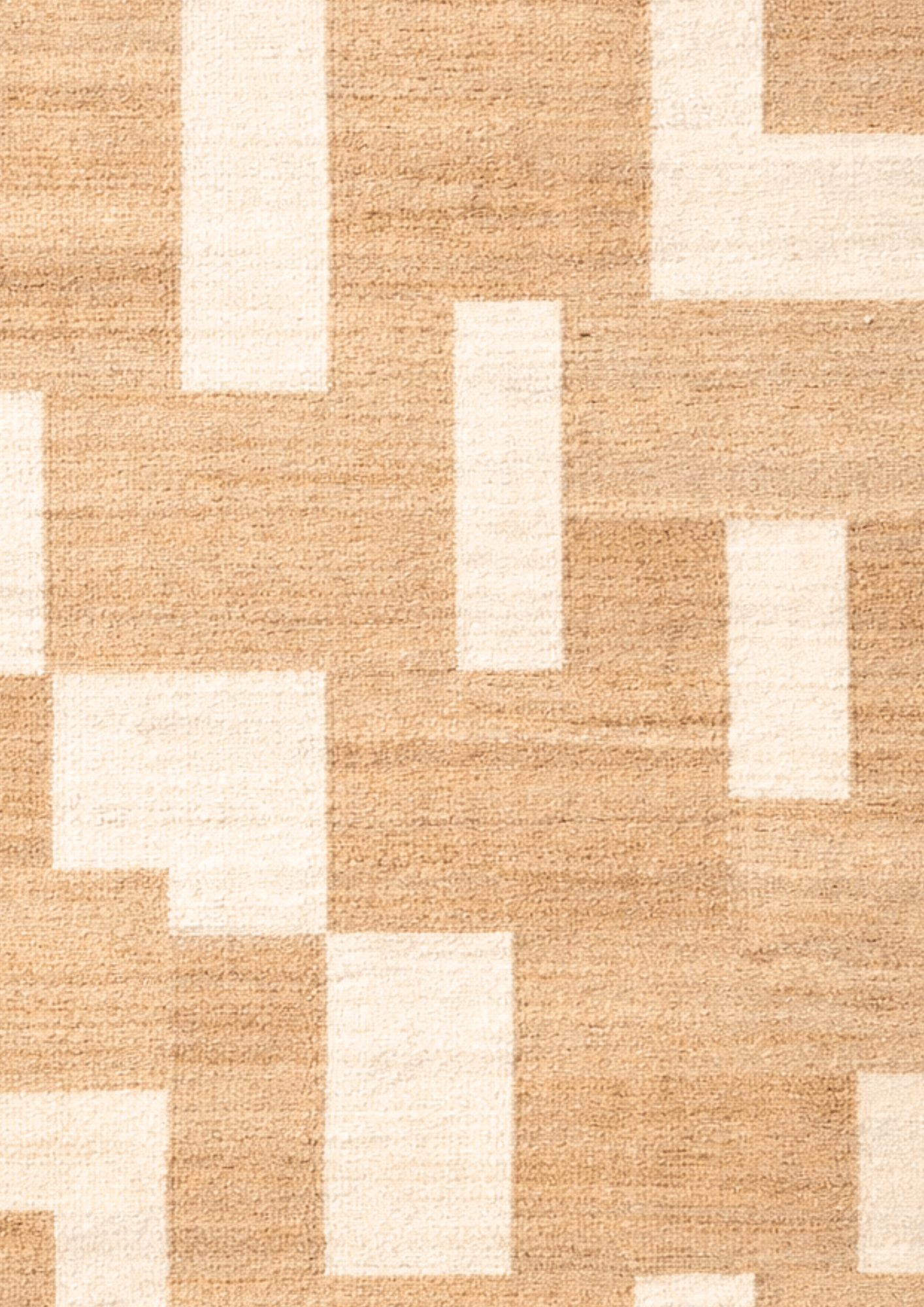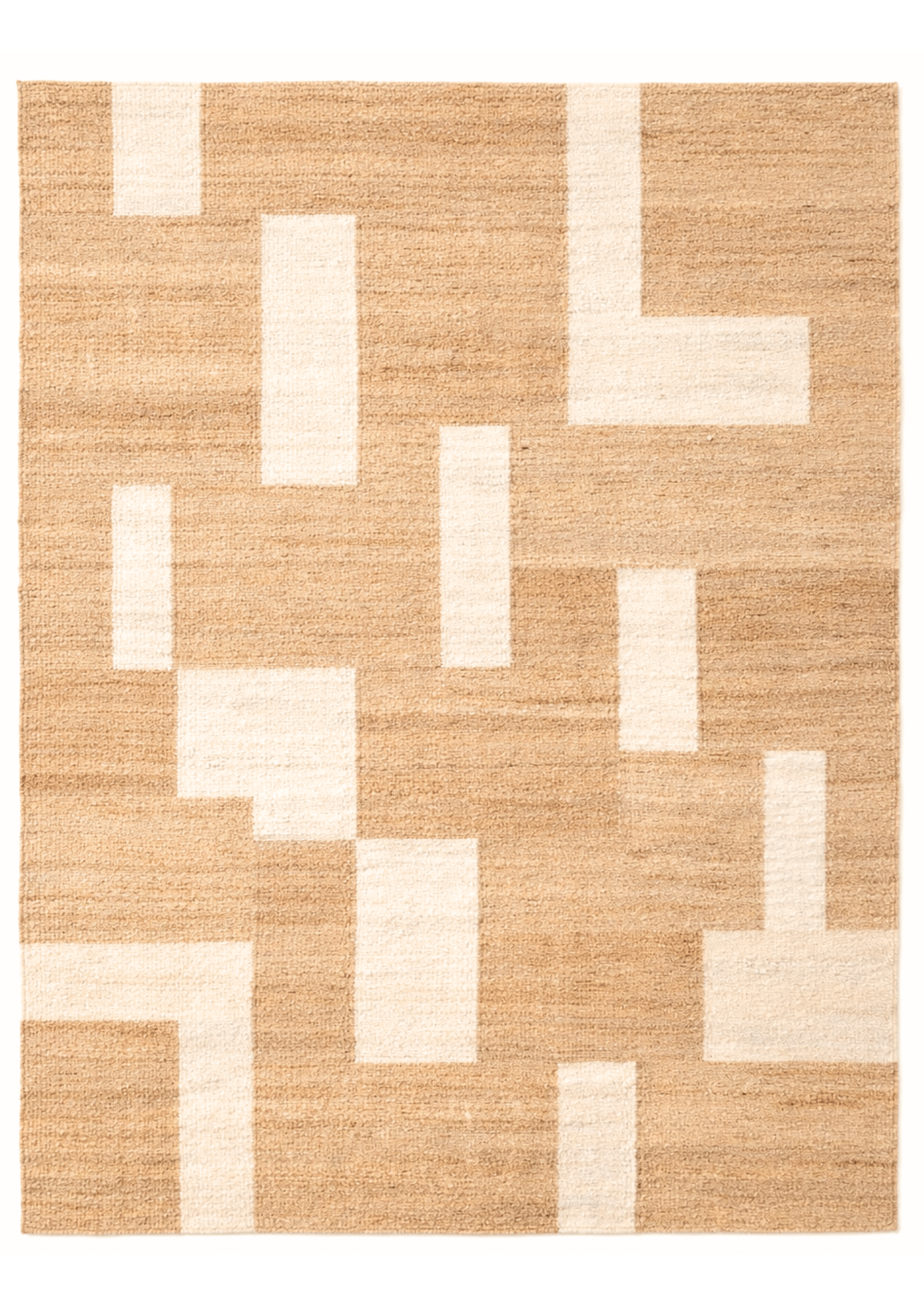 Woven by skilled artisans using natural hemp fibers, this sustainable area rug features a warm oat base layered with soft ivory geometric blocks. The subtle contrast creates quiet structure while maintaining an earthy, Scandinavian aesthetic.